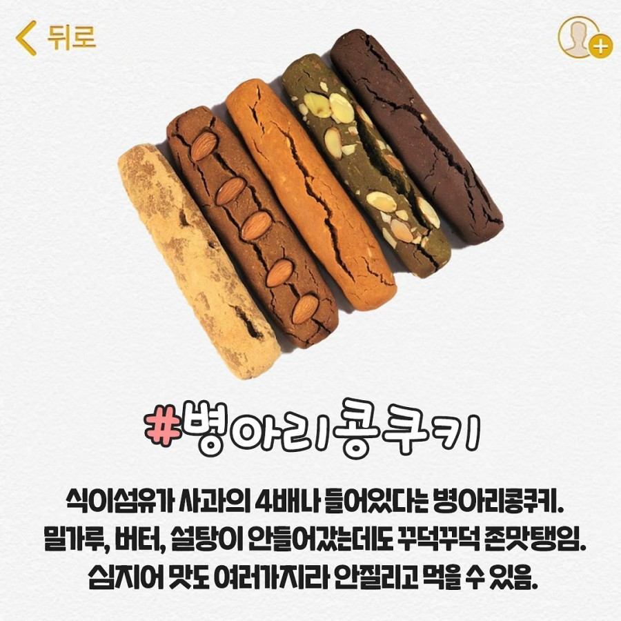 밀가루, 버터, 설탕이 안들어갔는데도 고소한 맛을 느낄 수 있다. 심어지 맛도 여러가지라 안질리고 먹을수 있는 장점~