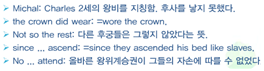 - Whig파의 우두머리 Earl of Shaftesbury 는 왕의 서자인 Duke of Monmouth