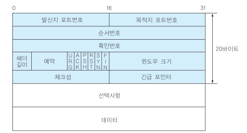 내에는 발신지(근원지)와 목적지의 포트 번호, 순서번호, 윈도우 크기 등의 정보를