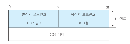 UDP 헤더는 [그림 8-17]과 같이 8바이트 길이로 매우 간단하며, 발신지와 목적지의