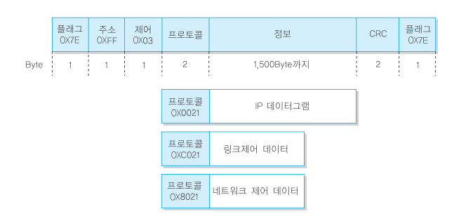 에서 여러 프로토콜을 사용할 수 있다. 즉, PPP 프로토콜은 데이터링크 계층 프로토