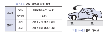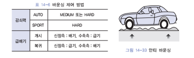 감쇠력은(damping force) 오토(auto) 모드 선택 시 급 출발, 급제동, 선회 시에는 감
