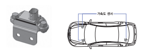 가속도센서(G센서)는 차량의 상하 가속도를 감지하기 위해 앞쪽에 2개, 뒤쪽에 1개 가 장착되어 있다. ECU는 주행 상태에서 가속도센서의 출력 값을 입력받아 차량의 거