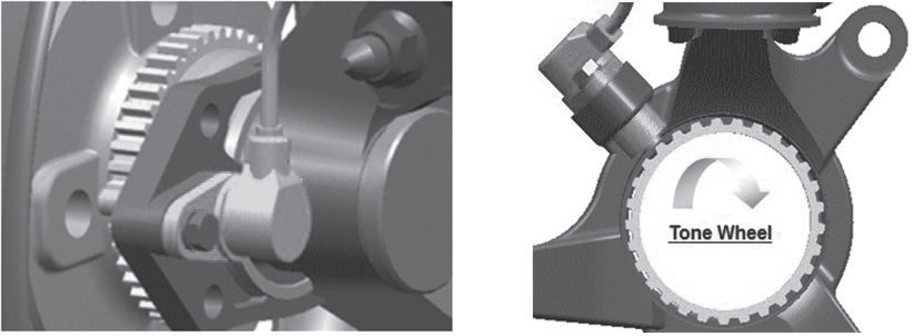 휠 스피드센서는 전자제어 제동시스템에서 가장 중요하고 기본적인 센서이며, 차속