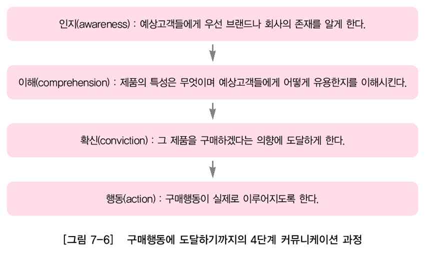 <그림 6-3> 구매행동에 도달하기까지의 4단계 커뮤니케이션 과정