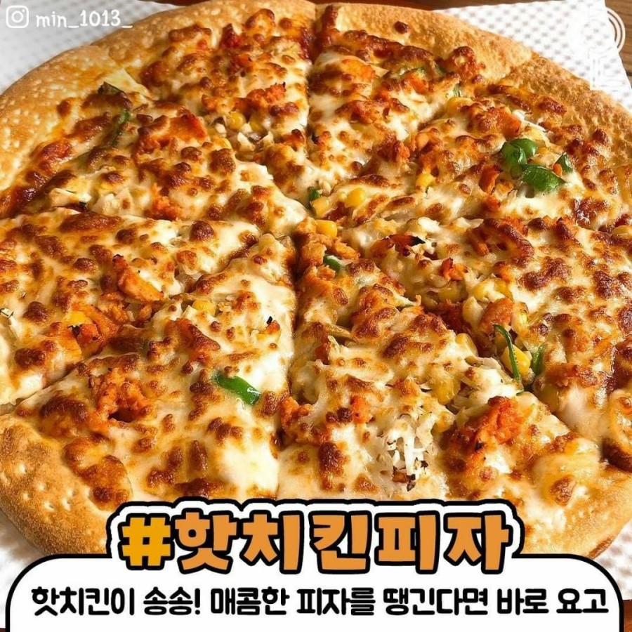 핫치킨이 송송~ 매콤한 피자가 땡긴다면 핫치킨피자를 추천한다.